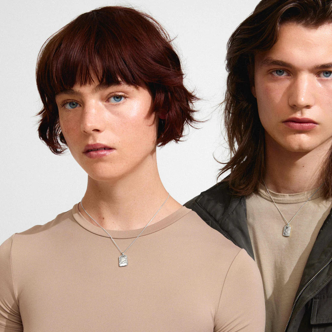 Capricorn. The stars shine within you! With the Capricorn Zodiac Sign Necklace from Pilgrim, show off a piece as unique as you are. Silver-plated chain and double-sided square pendant: on one side, the classic Capricorn symbol, on the other, your constellation in Preciosa crystals! This rustic, handmade pendant offers a bold and universal style, perfect as a personal statement or meaningful gift. The necklace measures 40 cm with a 12 cm extension and is made from 98% recycled materials.