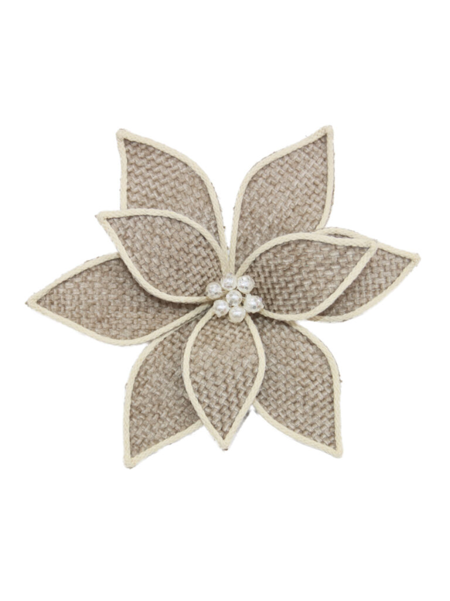Add an elegant and festive touch to your holiday decorations with this 12" taupe woven fabric poinsettia, adorned with a wire border and a sparkling beaded center. Perfect for embellishing wreaths, garlands, or floral arrangements, it adds refinement and winter charm to your décor.