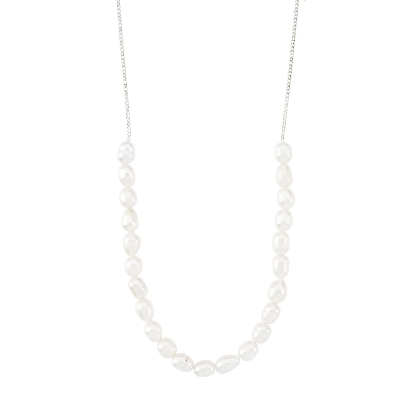Le collier de perles plaqué argenté 88de la collection BERTHE de Pilgrim est une pièce maîtresse élégante dans un design classique. Les perles d'eau douce uniques se distinguent par des formes ludiques et des silhouettes organiques qui créent une expression à la fois élégante et naturelle. Mélangez-les avec d'autres chaînes pour obtenir un look élégant et superposé. La chaîne mesure 40 cm + 12 cm de rallonge.