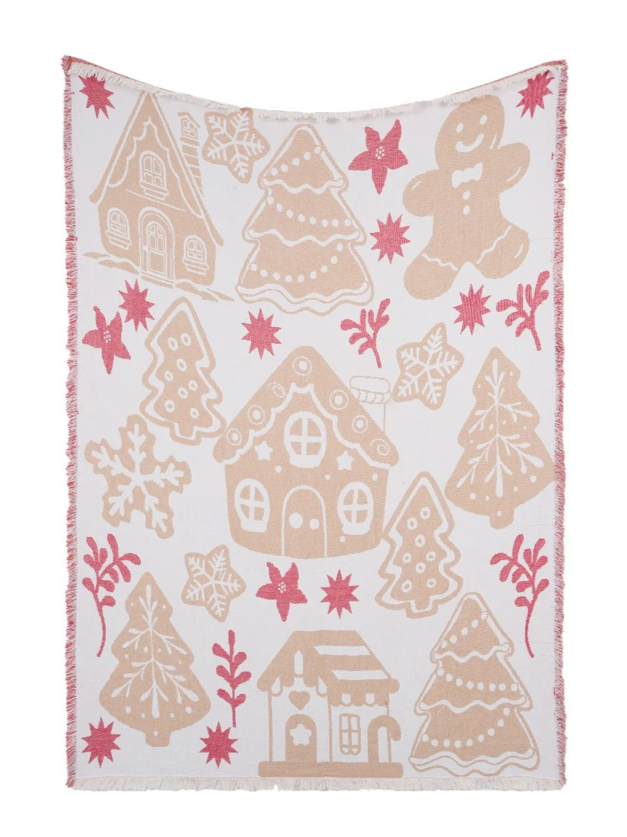 Enveloppez-vous de la magie des Fêtes avec ce jeté en tricot orné de charmantes maisons de pain d’épices. Parfait pour créer une ambiance chaleureuse et gourmande, il deviendra vite un incontournable de vos soirées d’hiver.