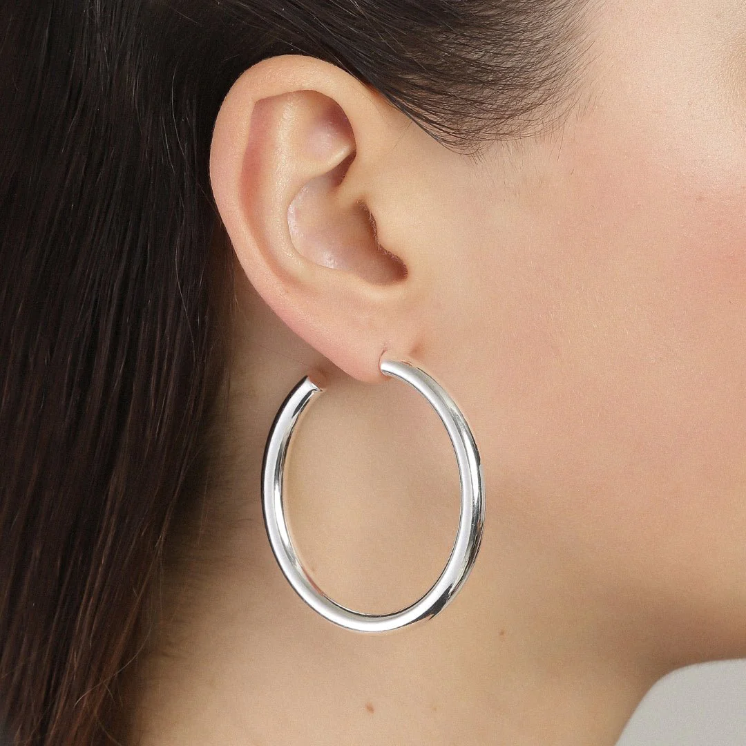 Nous aimons ces anneaux Maddie plus grands que nature pour leur légèreté et leur grosseur ! Des anneaux simples pour plus d'audace. Finition polie.