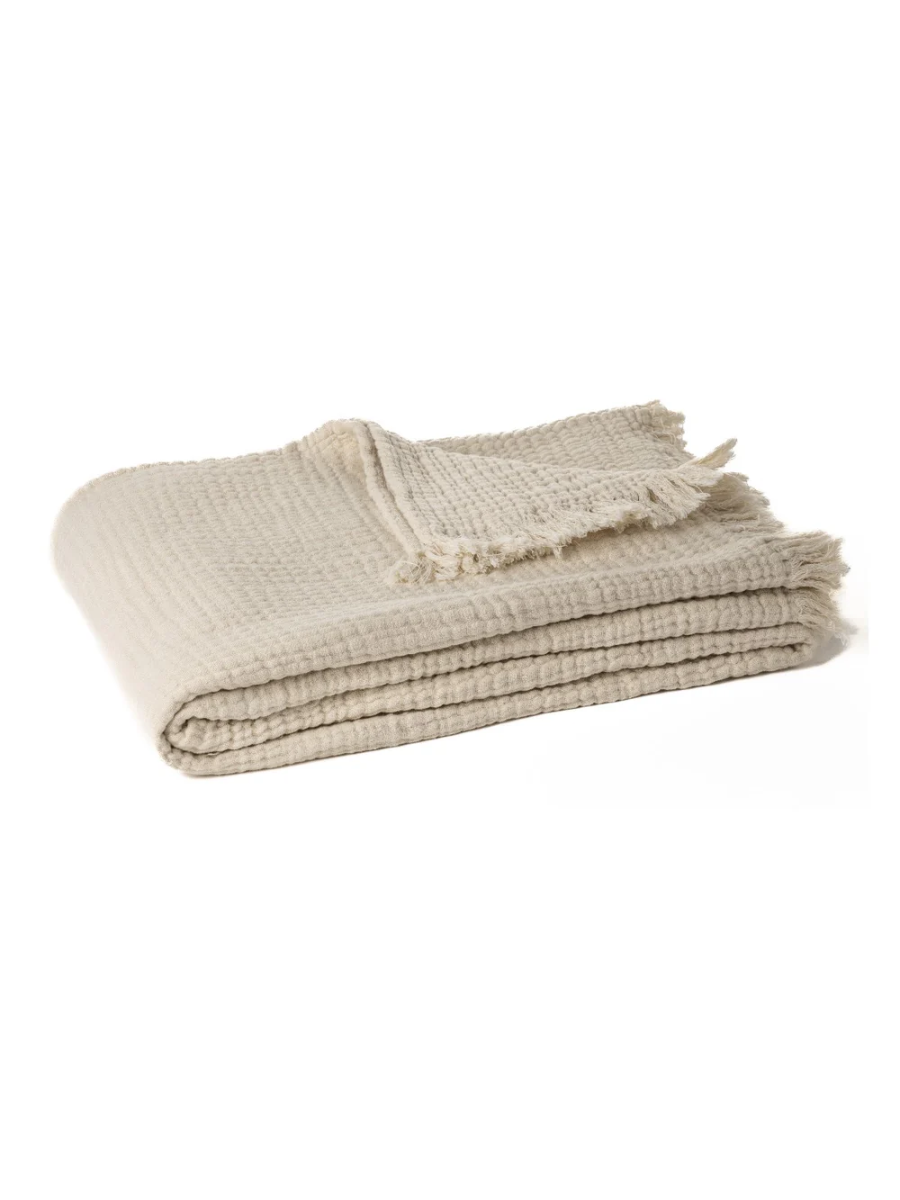 • Jeté en mousseline de coton à 4 plis, dans une teinte crème apaisante