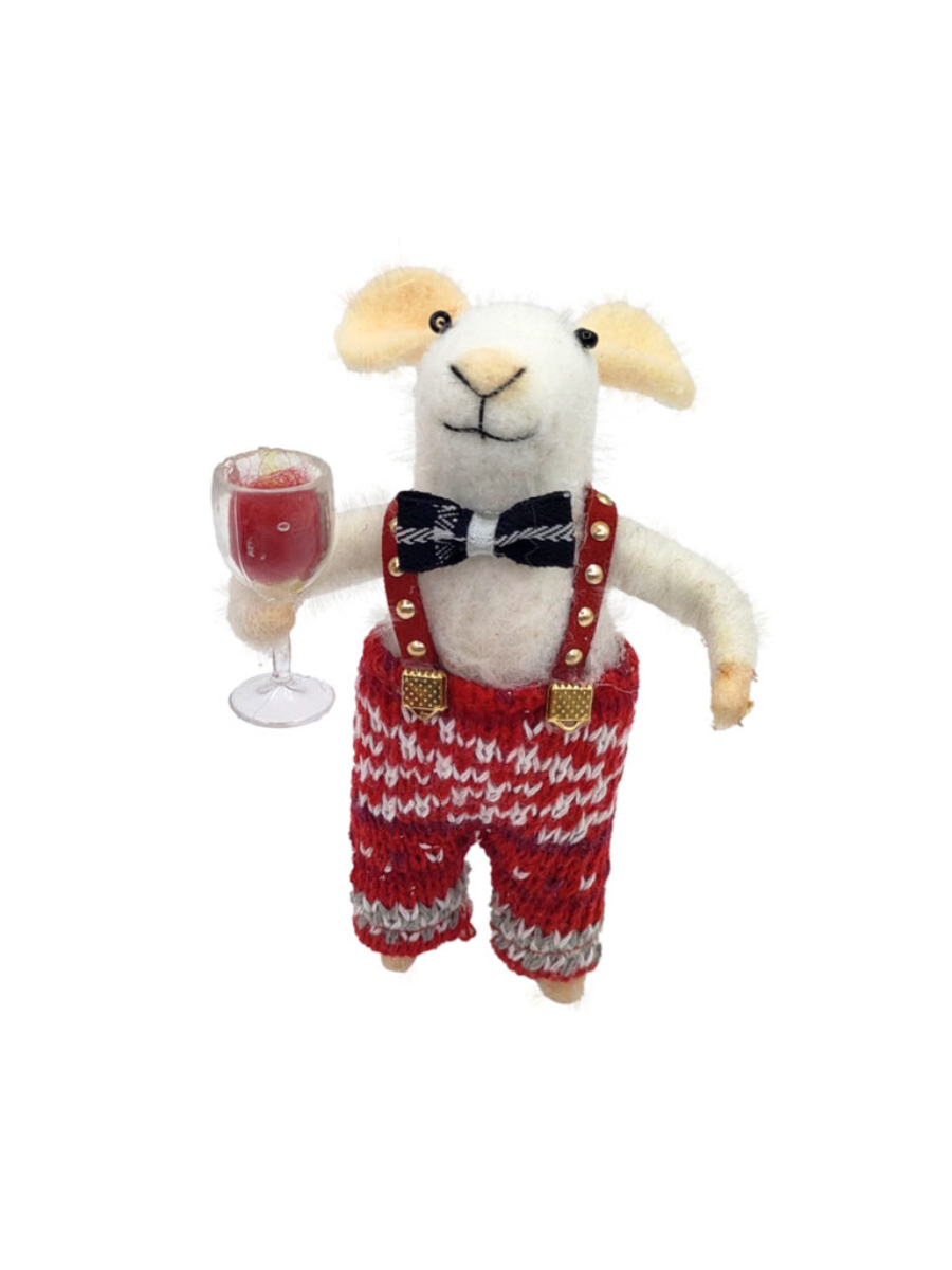 Ajoutez une touche festive et conviviale à votre décor du temps des fêtes avec Cerise, cette souris en laine rouge et blanc vêtue d’une salopette et tenant délicatement un verre de vin. Conçue à la main par des artisans qualifiés, elle offre un fini luxueux et durable, parfaite pour orner un sapin, un manteau de cheminée, une couronne ou une table festive.
