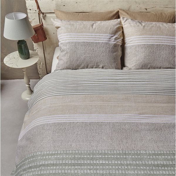 - Ensemble de housse de couette ligné dans les teintes de naturel, de vert sauge et de ocre